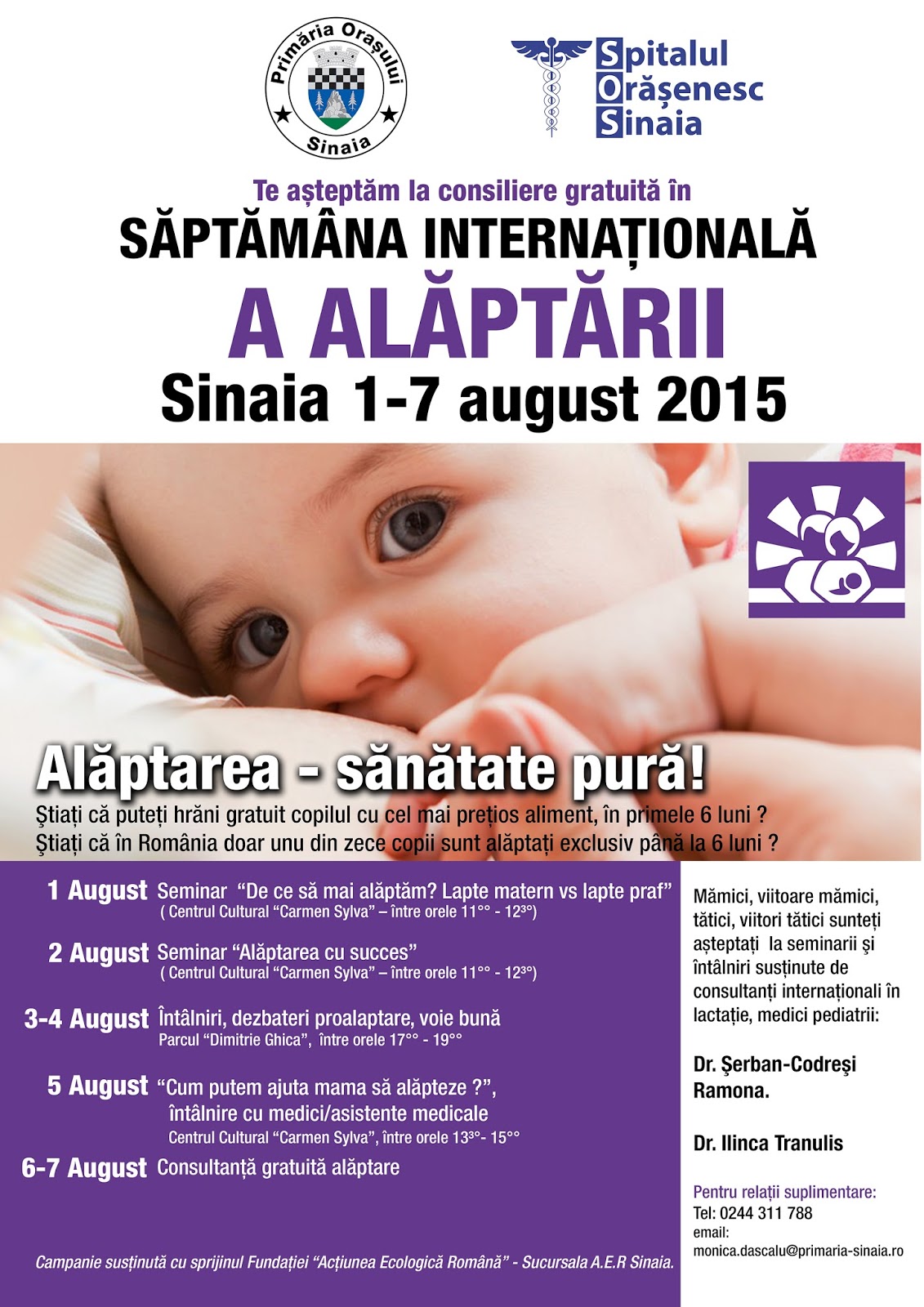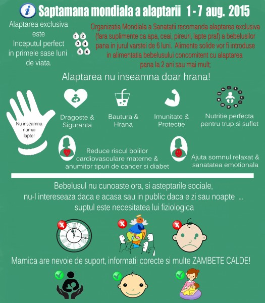 – “Plimbare conştientă – Alăptarea e iubire” va fi organizată marți, 4 august 2015, începând de la stația de metrou Aviatorilor. Mai multe amănunte aici: “Plimbare constienta – Alaptarea e iubire”